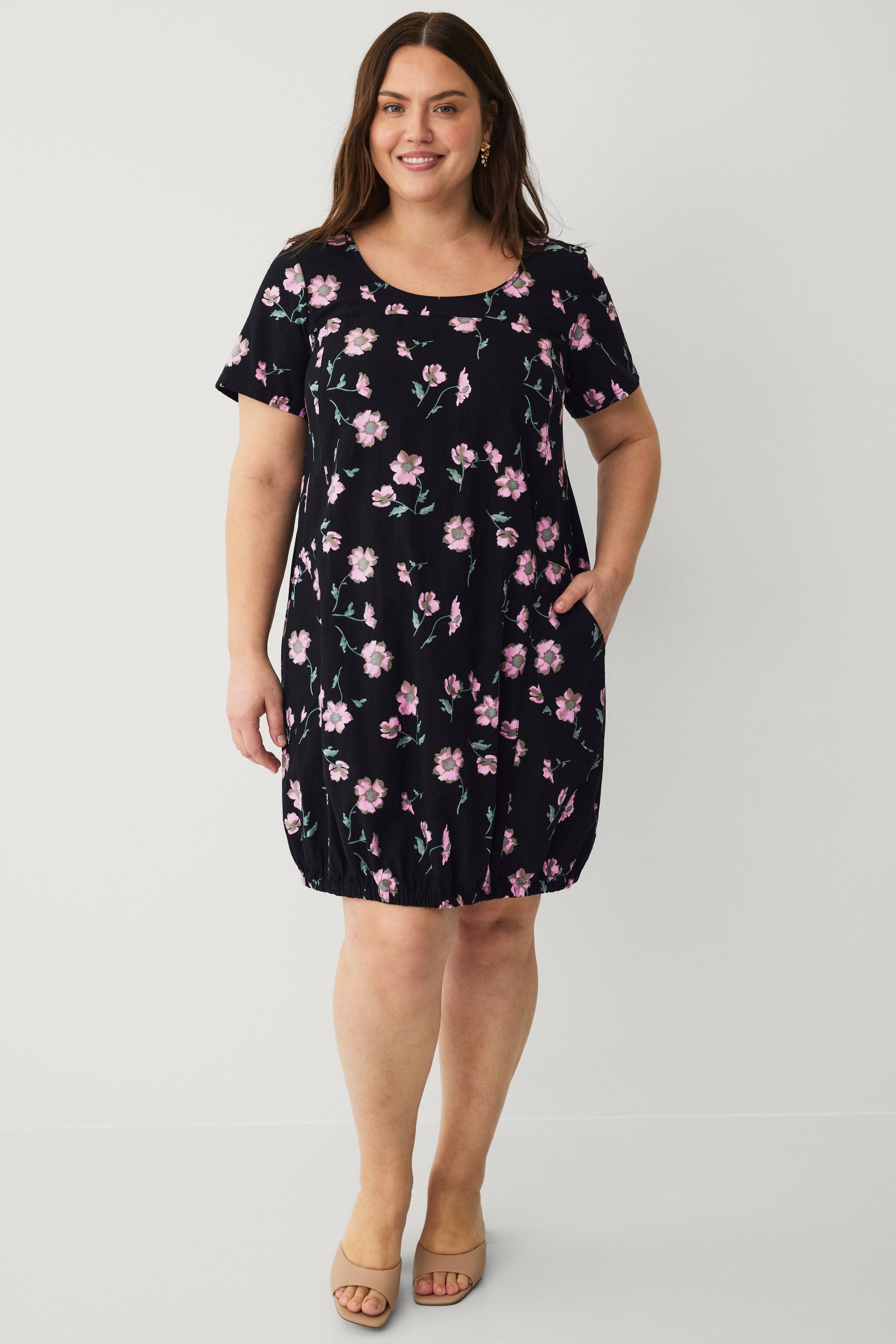 Behagelig avslappet, romslig og med et nydelig rosemønster i vakre farger.