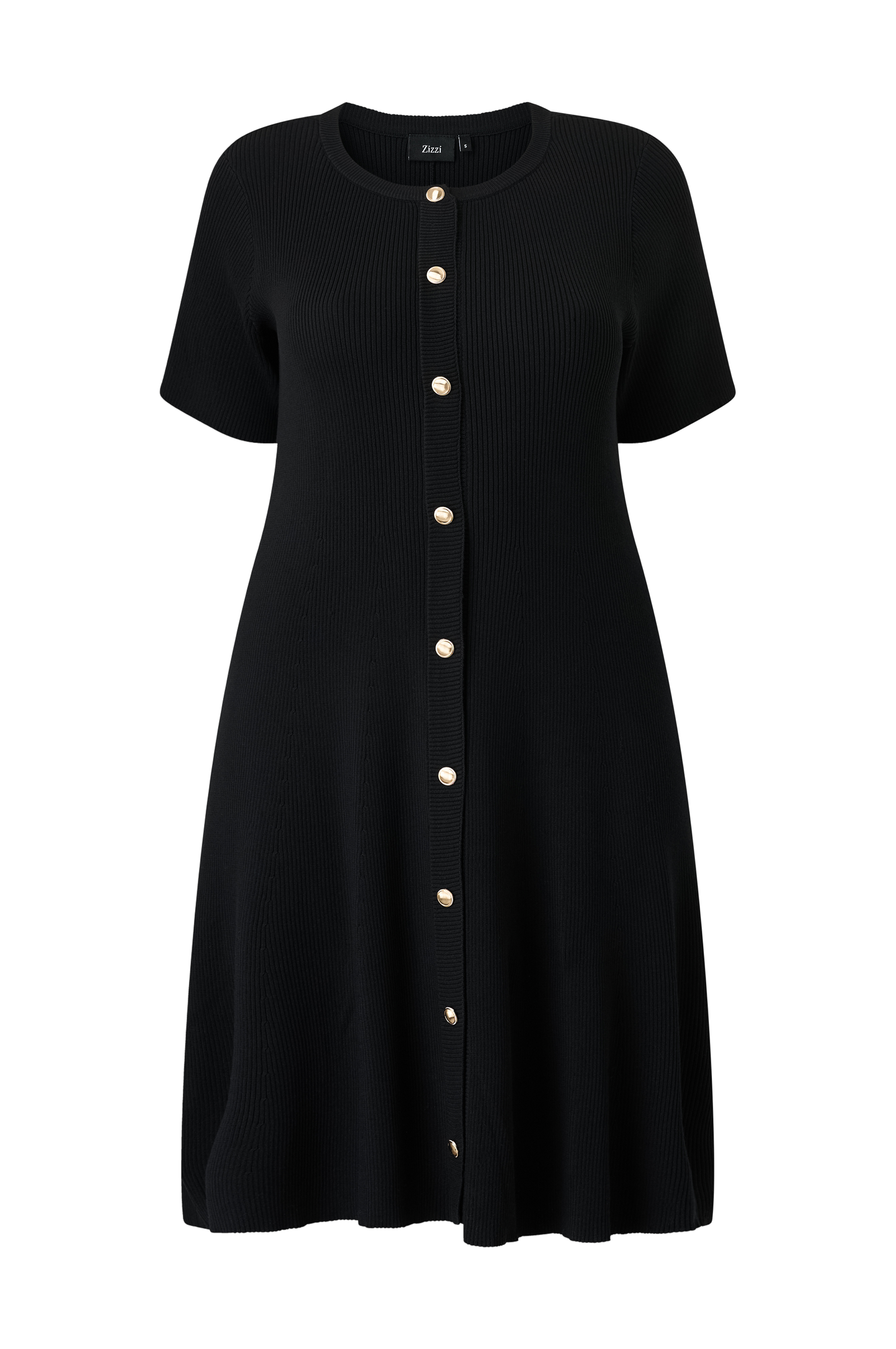 • Ribbet kjole• Rund halsringning• Korte ermer• Knappelukking• Pluss-størrelser• Lengde: 111 cm i størrelse S