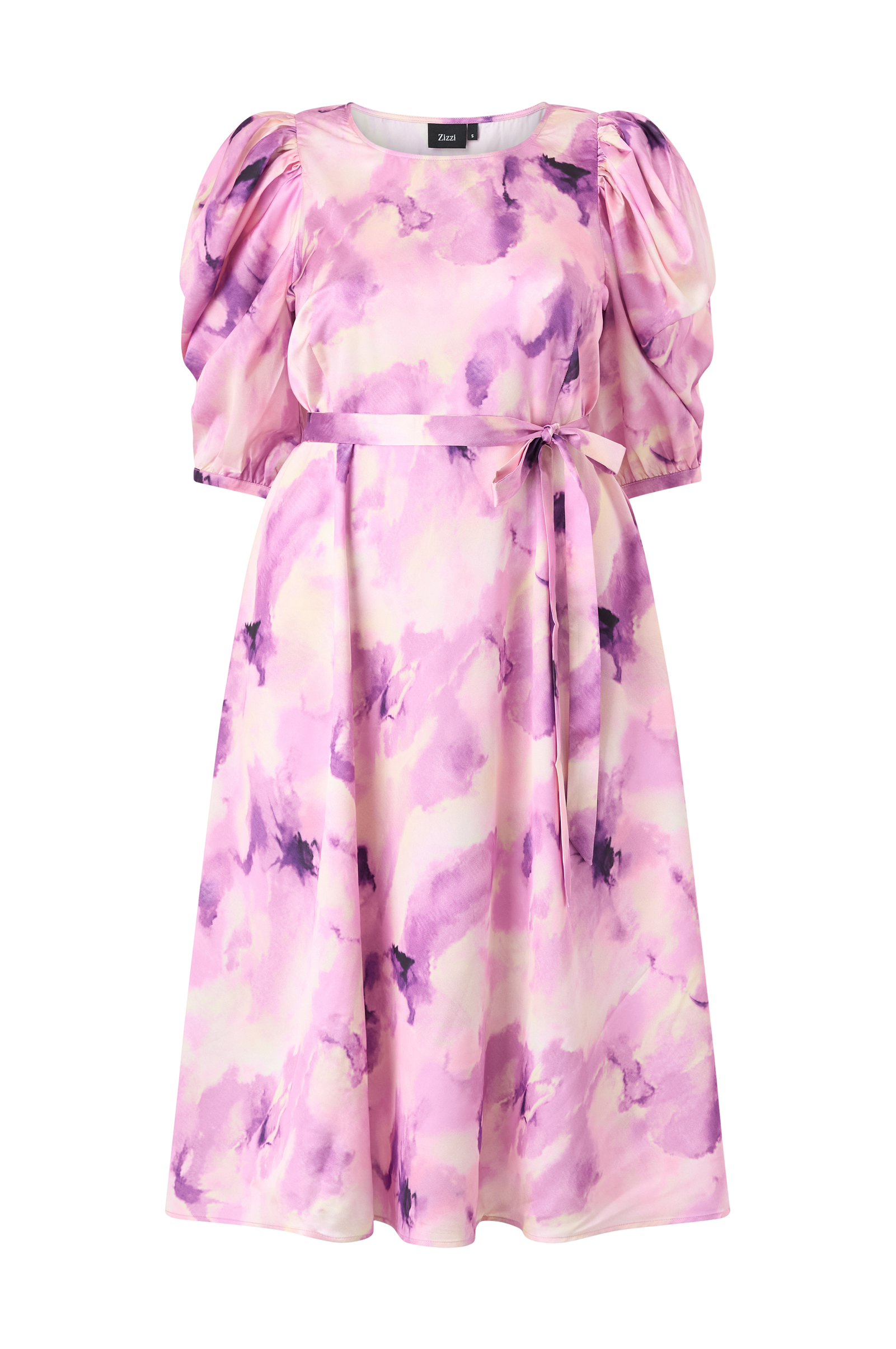 • Plusstørrelser• Utsvingt modell i sateng• Rund hals• Bred, halvlang bobleerme med tynn mansjett• Markert midje med knytbart belte• Lengde: 122 cm i størrelse S