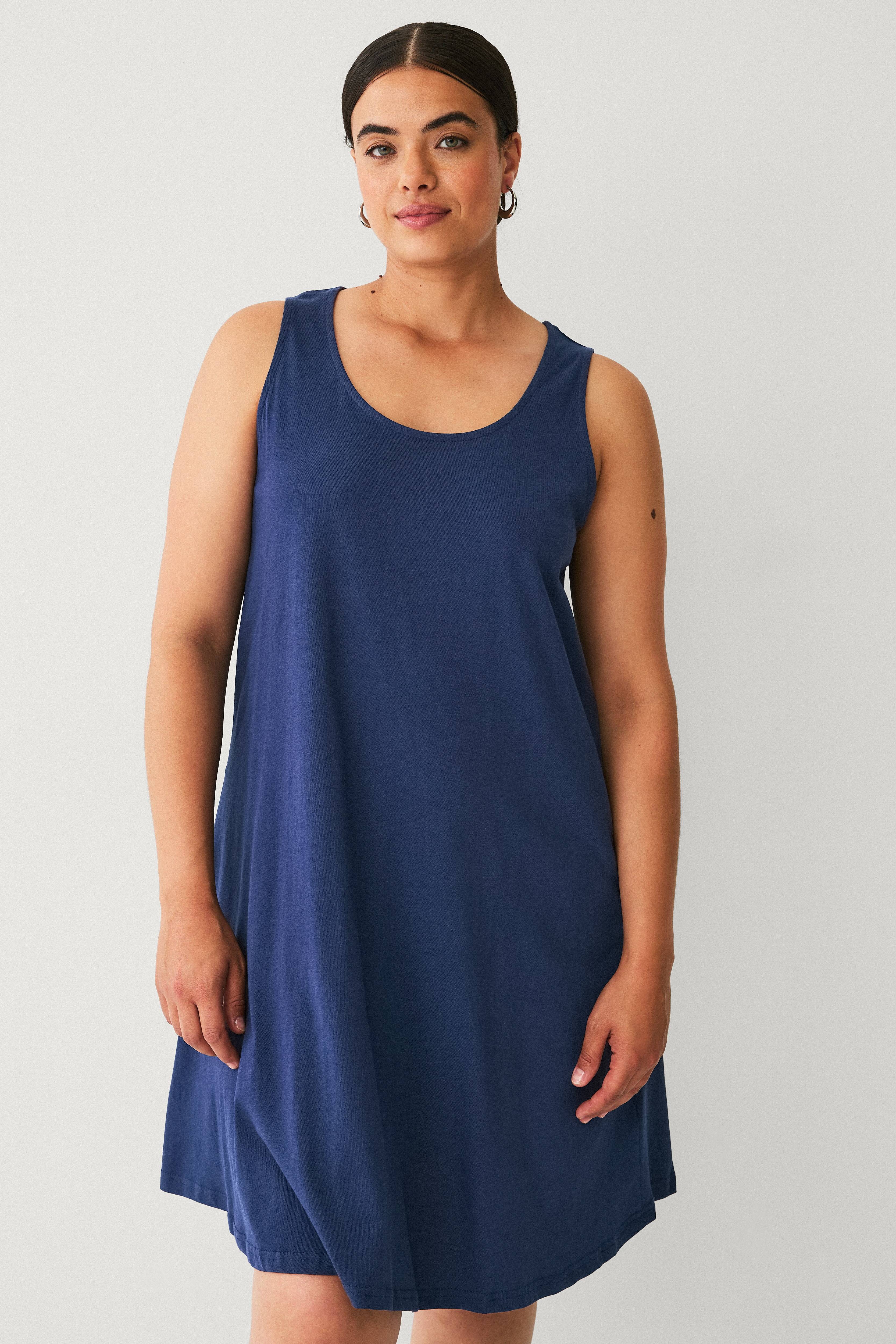 • Ermløs, a-linjeformet kjole i bomull• Avslappet passform• Rund hals• Plusstørrelser• Lengde: 99 cm i størrelse S