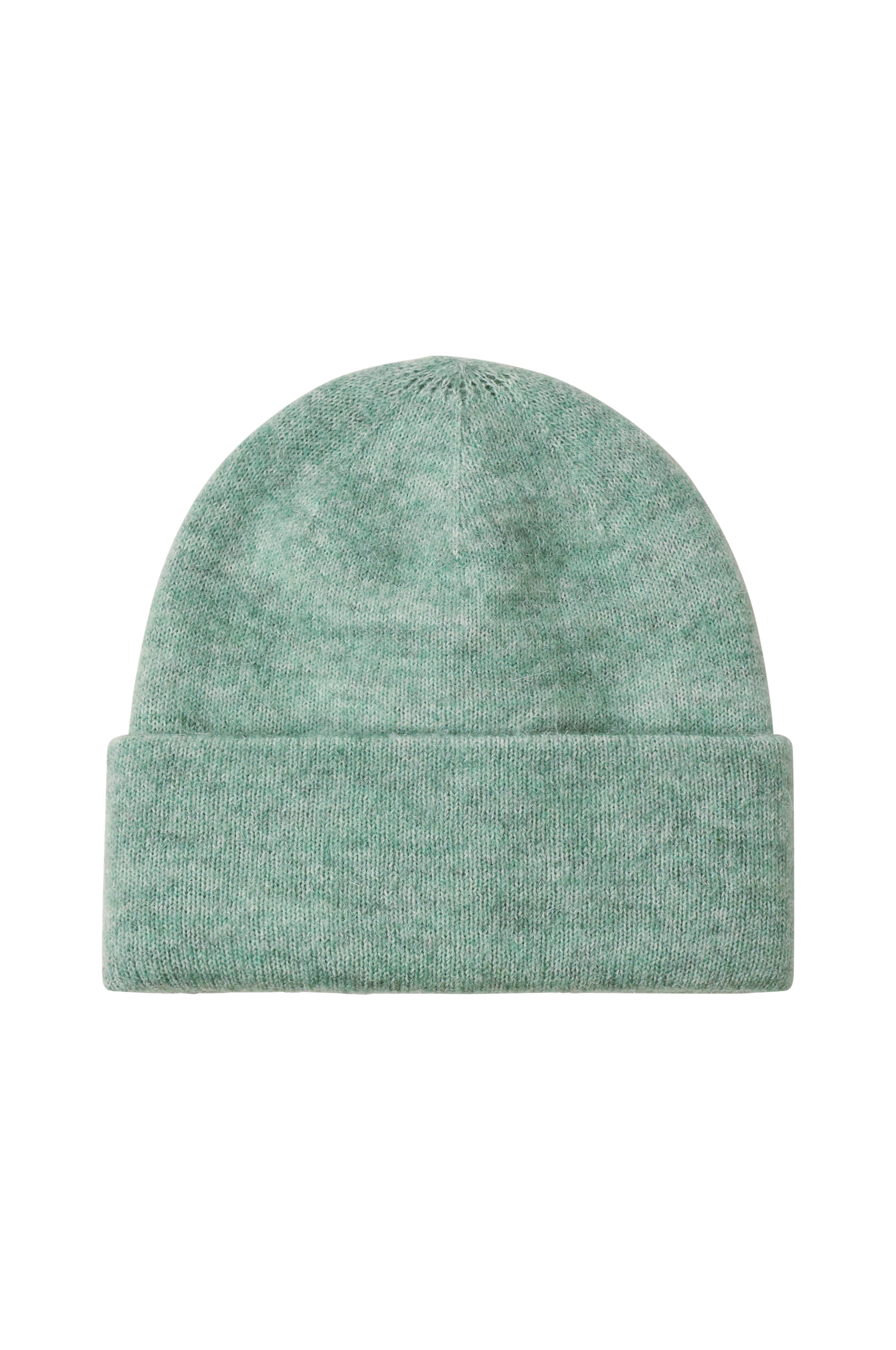 • Finstrikket lue i ullblanding• Oppbrettet hem
