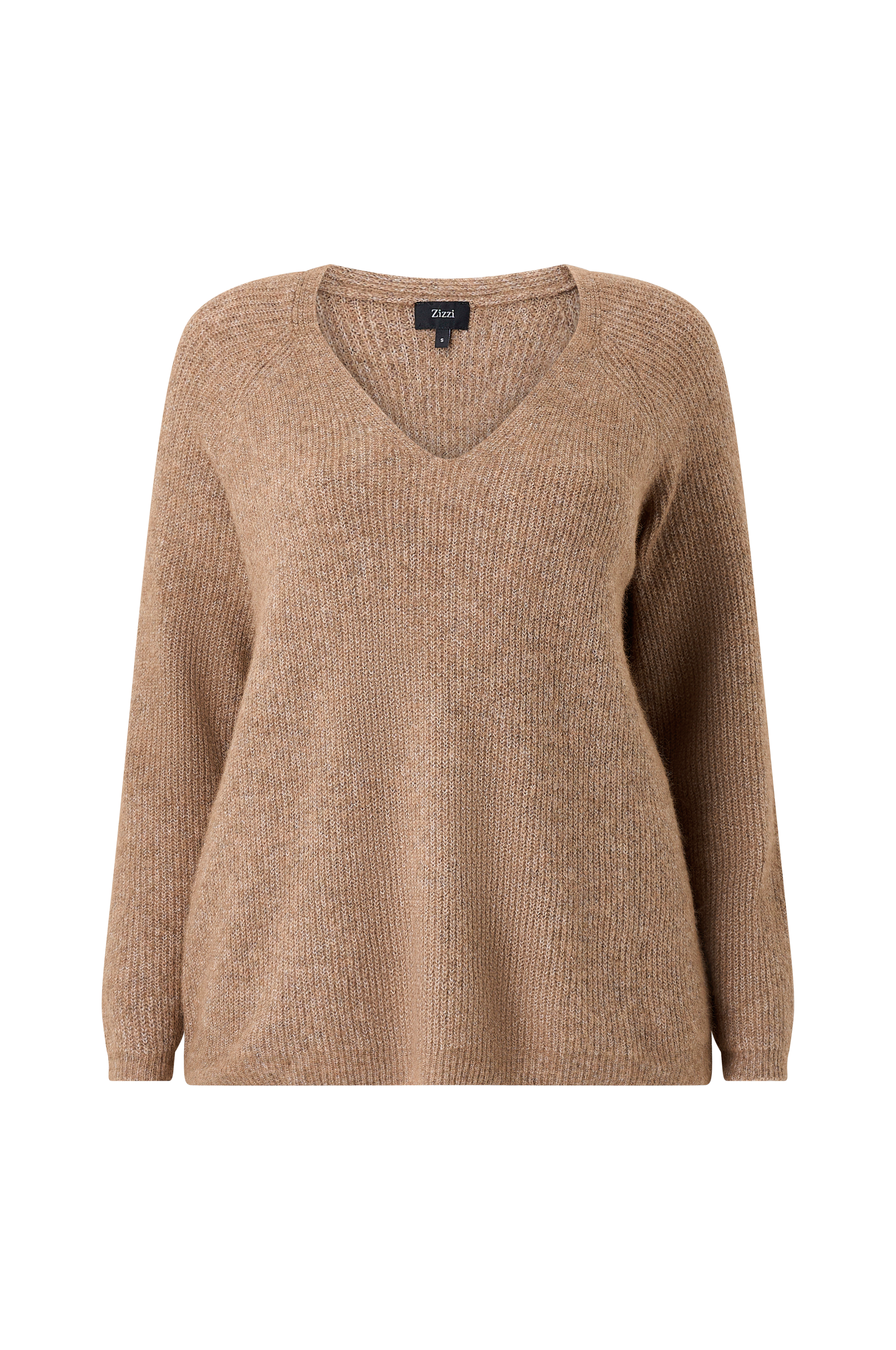 • Myk, ribbestrikket pullover i ullmiks• V-formet hals• Lange raglanermer• Pluss-størrelser