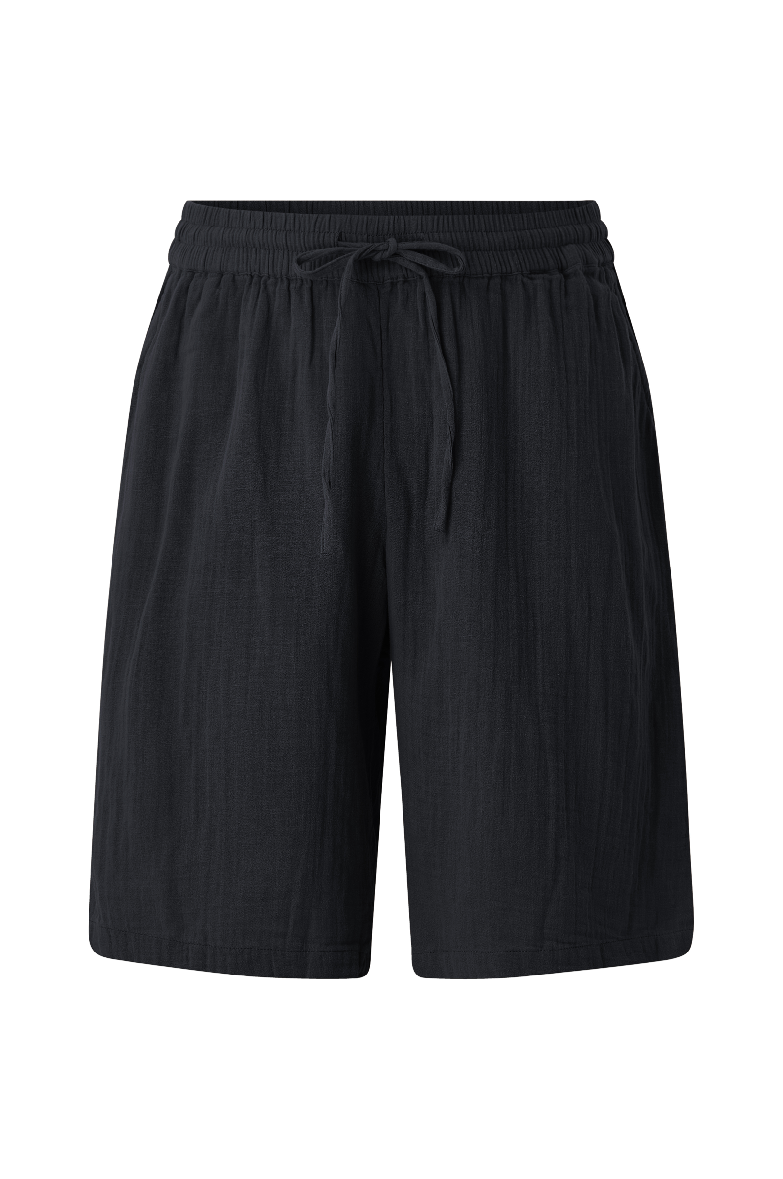 • Shorts i bomullsmuslin• Elastisk midje med snøring• Brede buksebein• Sidelommer• Plusstørrelser