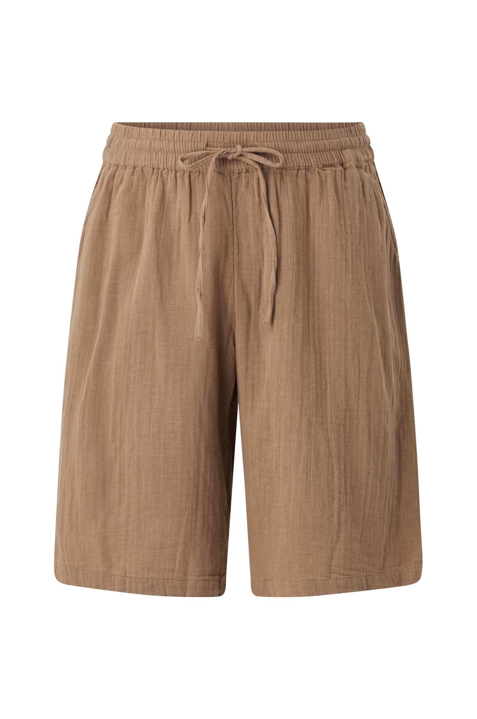 • Shorts i bomullsmuslin• Elastisk midje med snøring• Brede buksebein• Sidelommer• Plusstørrelser
