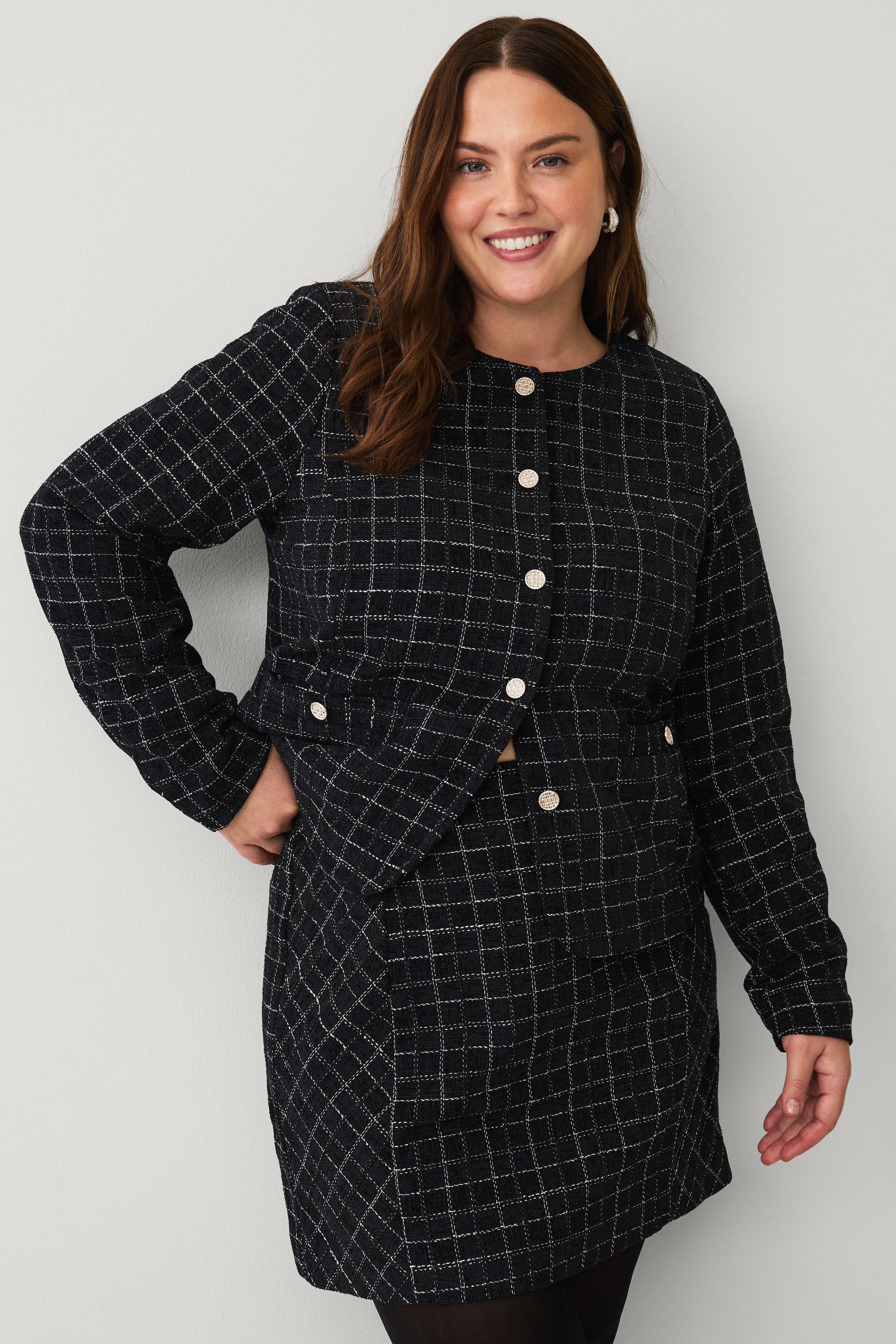 • Kort, fôret skjørt med vevd rutemønster