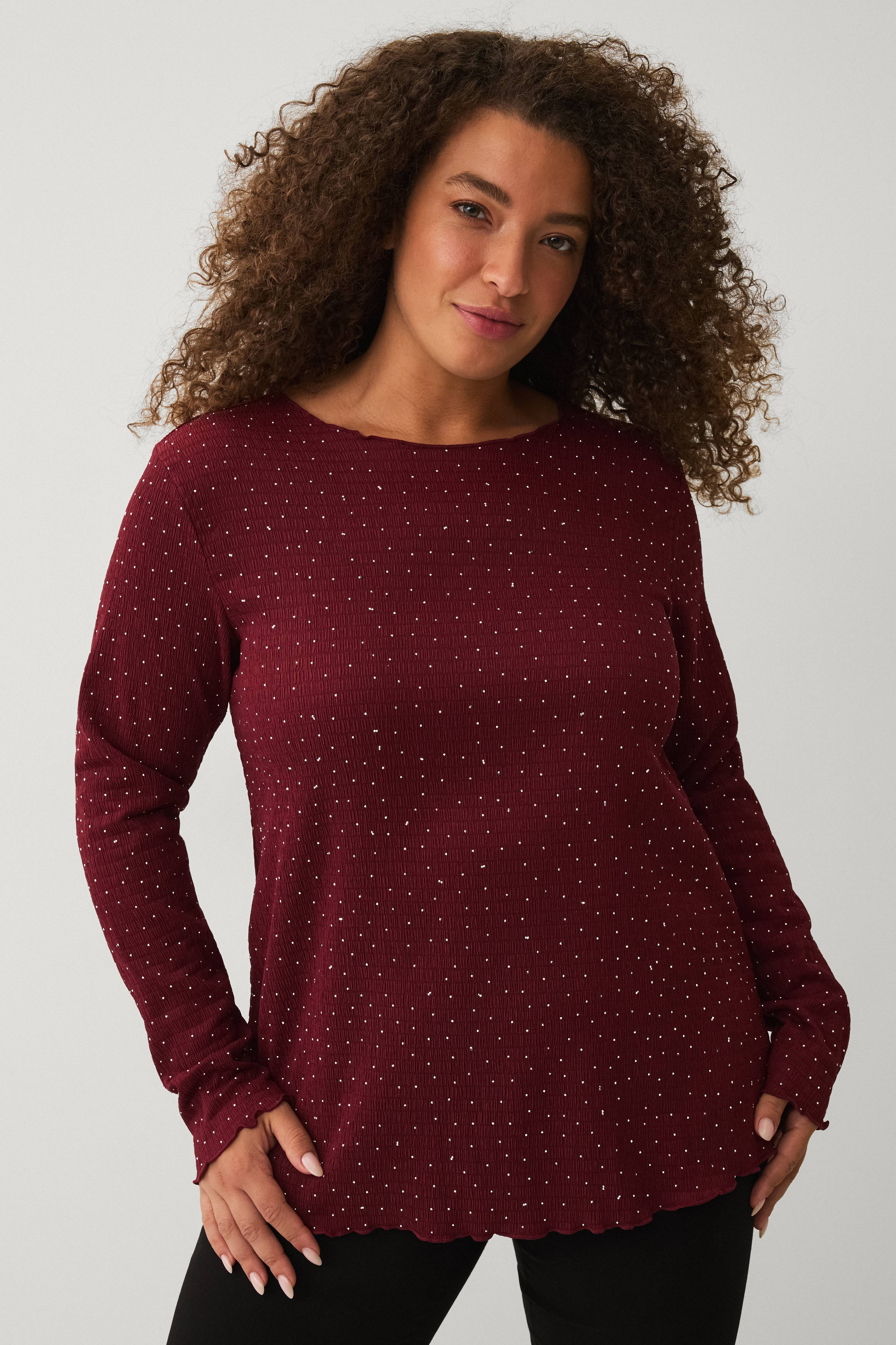 • Langermet, stukturert topp med rund hals