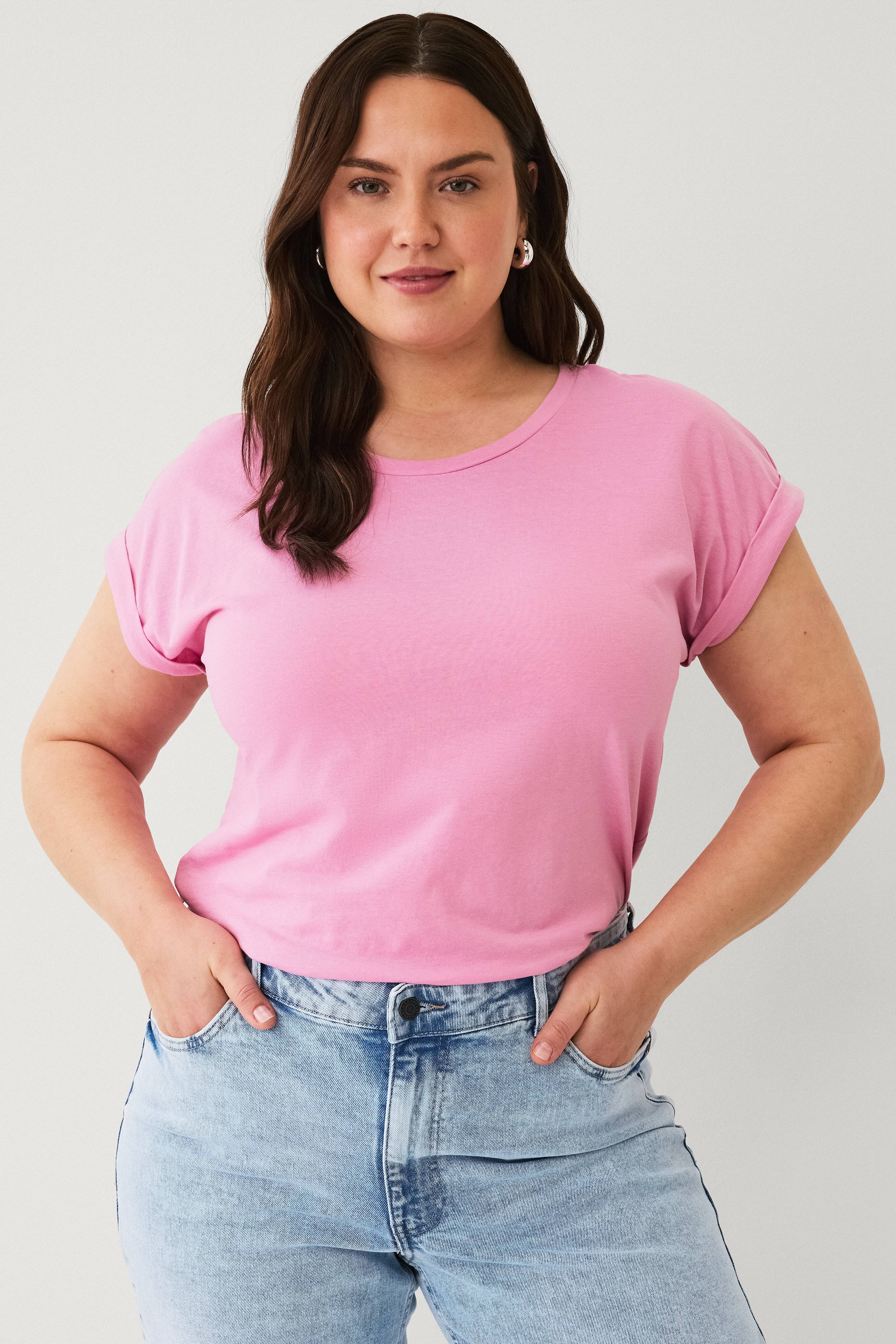 • Kort erme med opprullede ermer• Rund halsringning• Løs passform• Plusstørrelser
