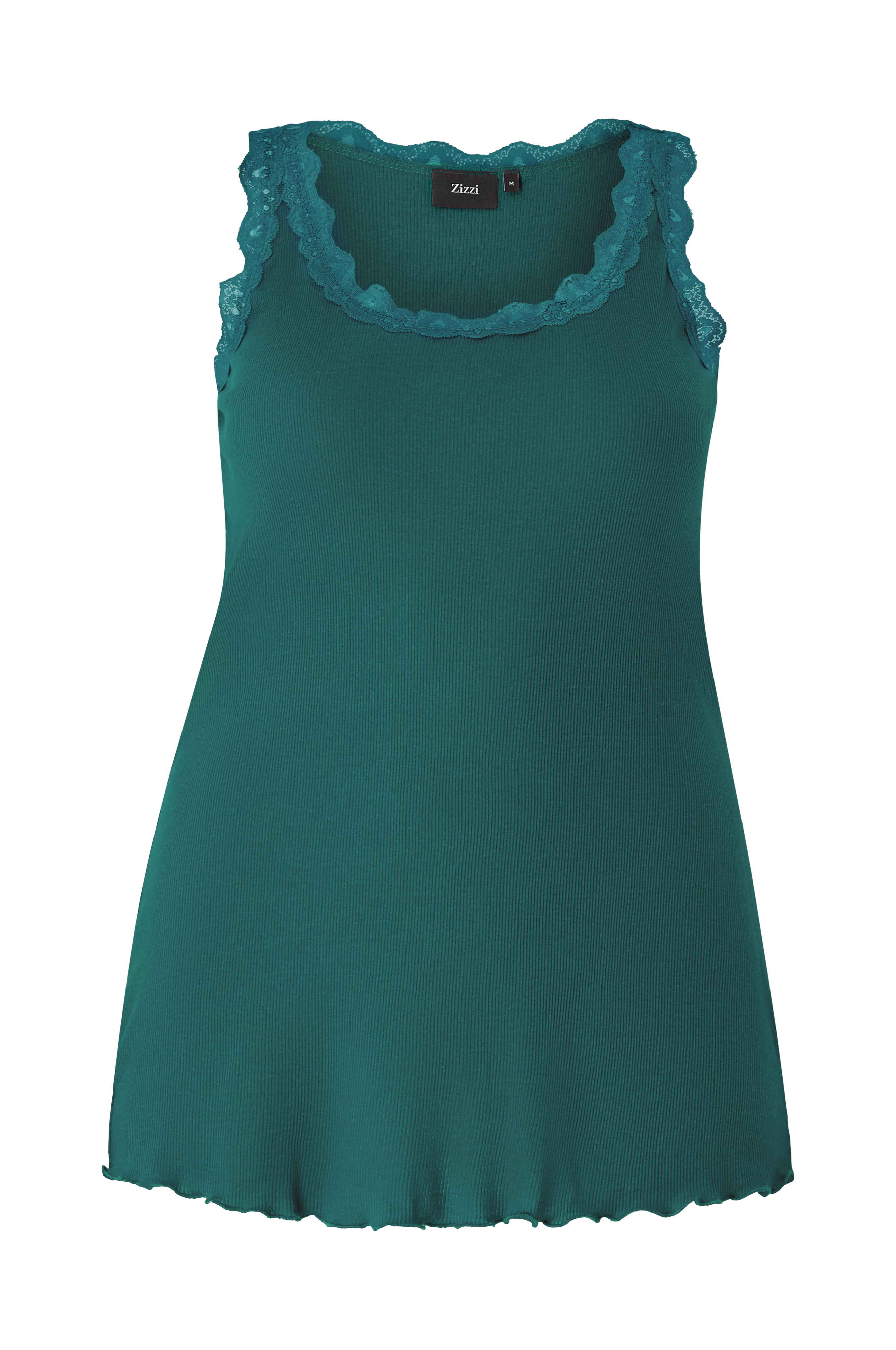 • Ermeløs design• Ribbet, stretchy jersey• Rund hals• Blondekant rundt halsen og ved armhulene