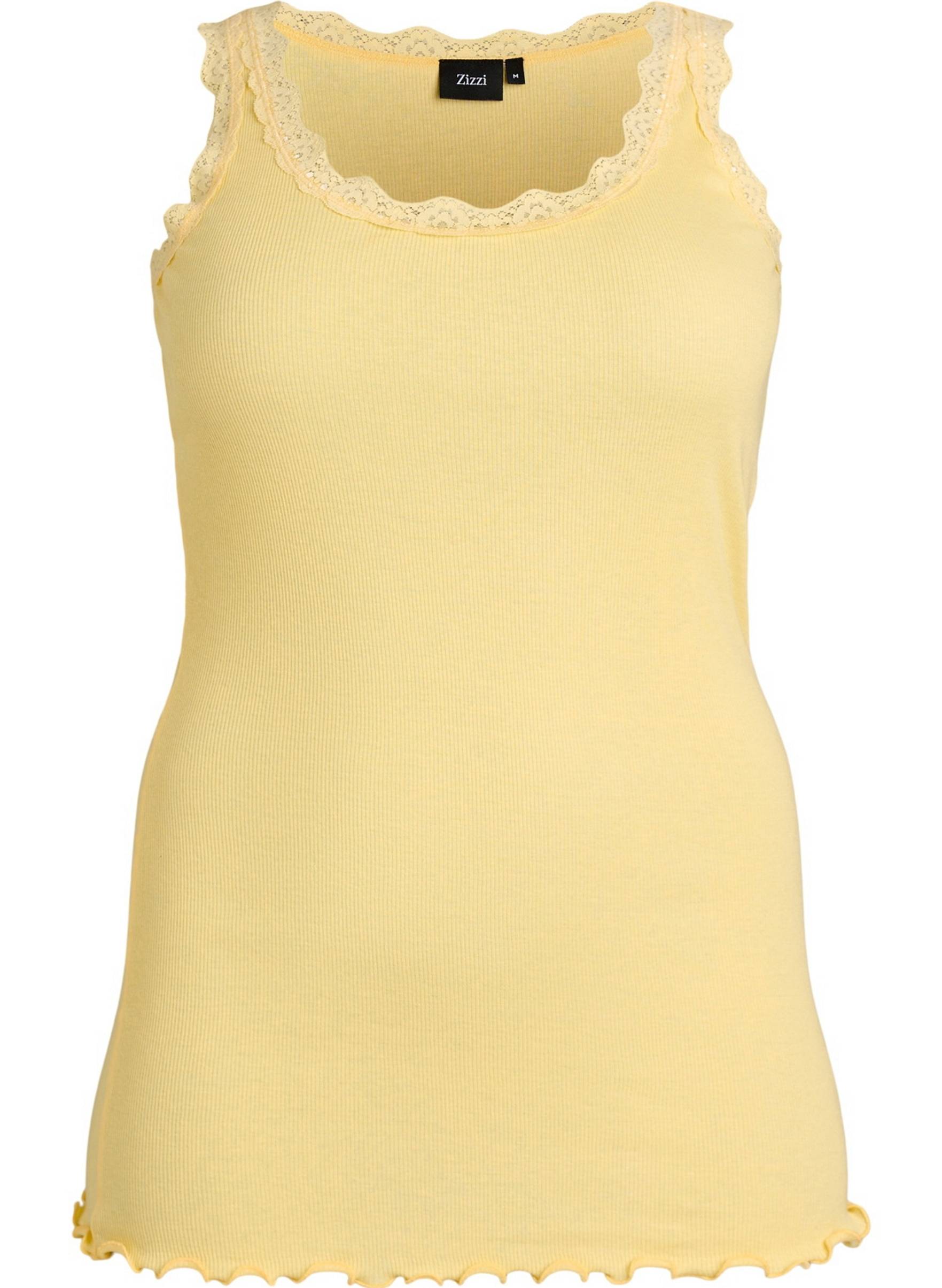 • Ermeløs design• Ribbet, stretchy jersey• Rund hals• Blondekant rundt halsen og ved armhulene