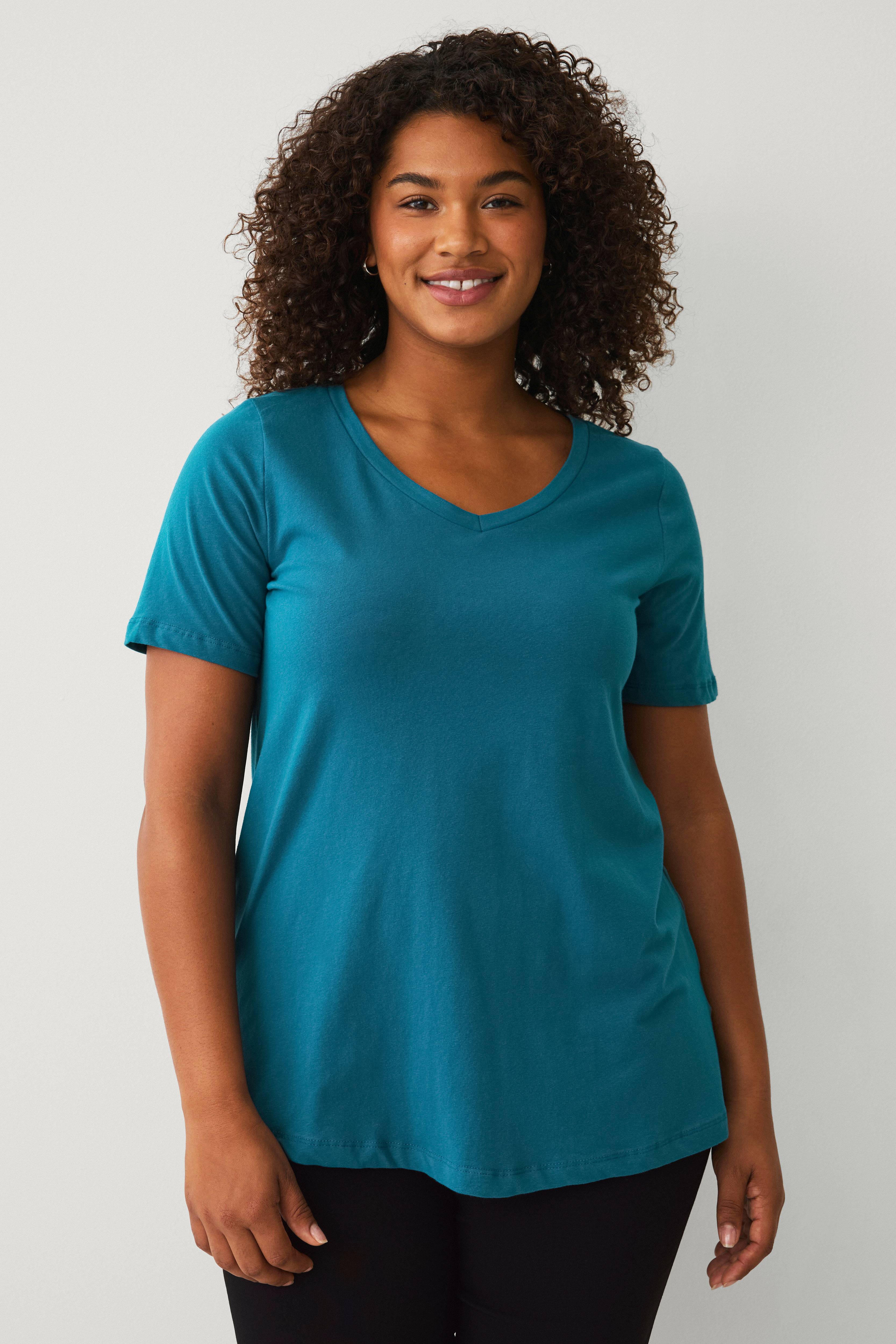 • Kort erme• V-formet hals• Komfortabel passform• Myk, stretchy bomullskvalitet