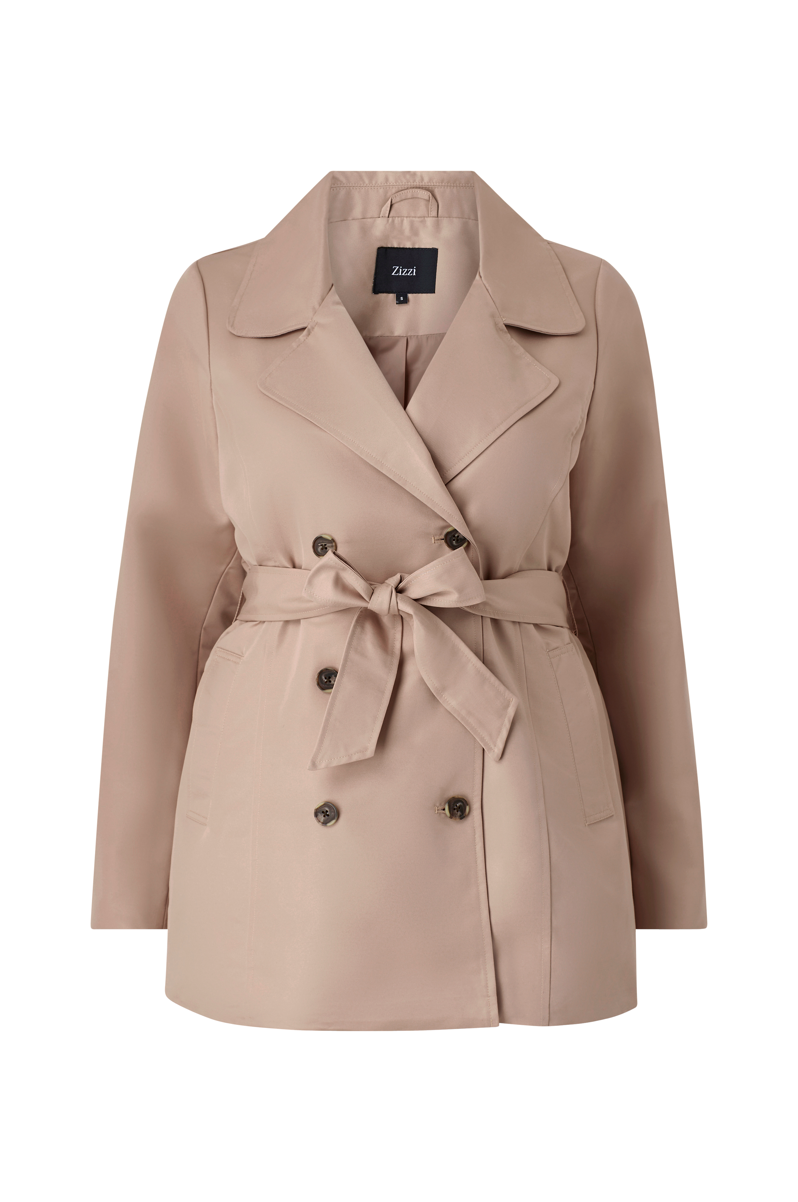 • Kort trenchcoat• Dobbelbryst modell• Avtakbart knytbart belte ved midjen• To lommer• Plusstørrelser• Lengde: 81 cm i størrelse S