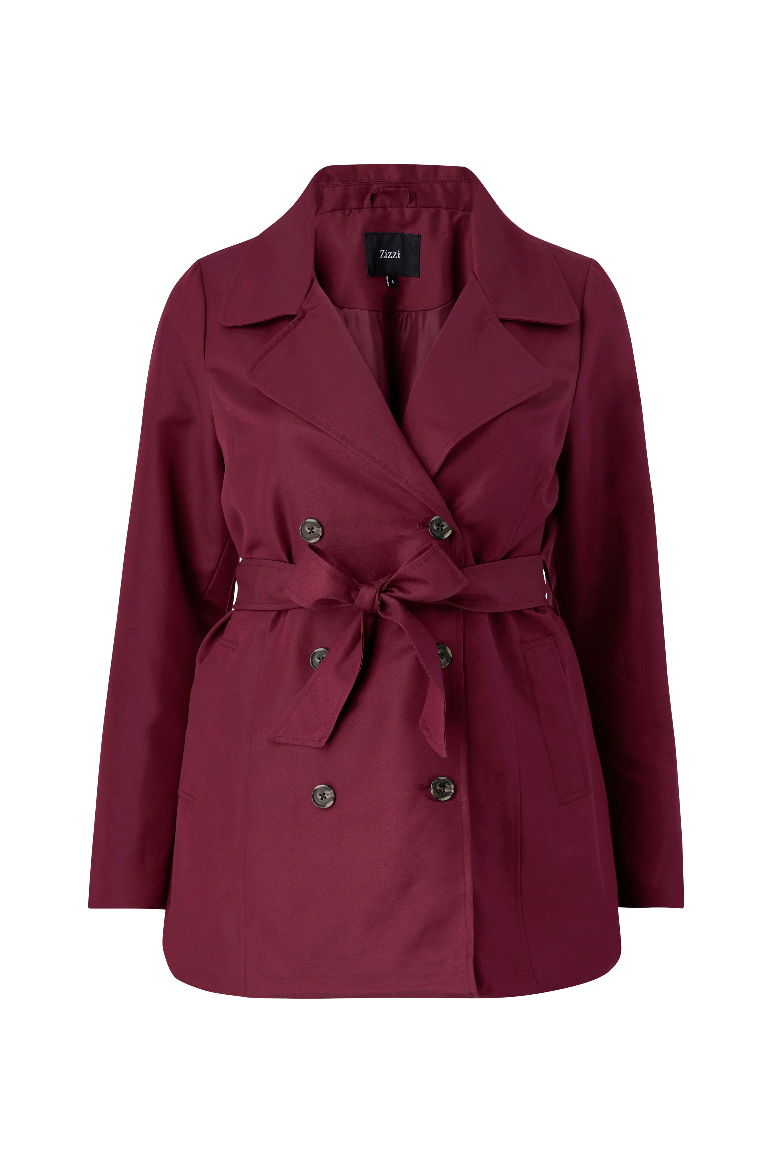 • Kort trenchcoat• Dobbelbryst modell• Avtakbart knytbart belte ved midjen• To lommer• Plusstørrelser• Lengde: 81 cm i størrelse S