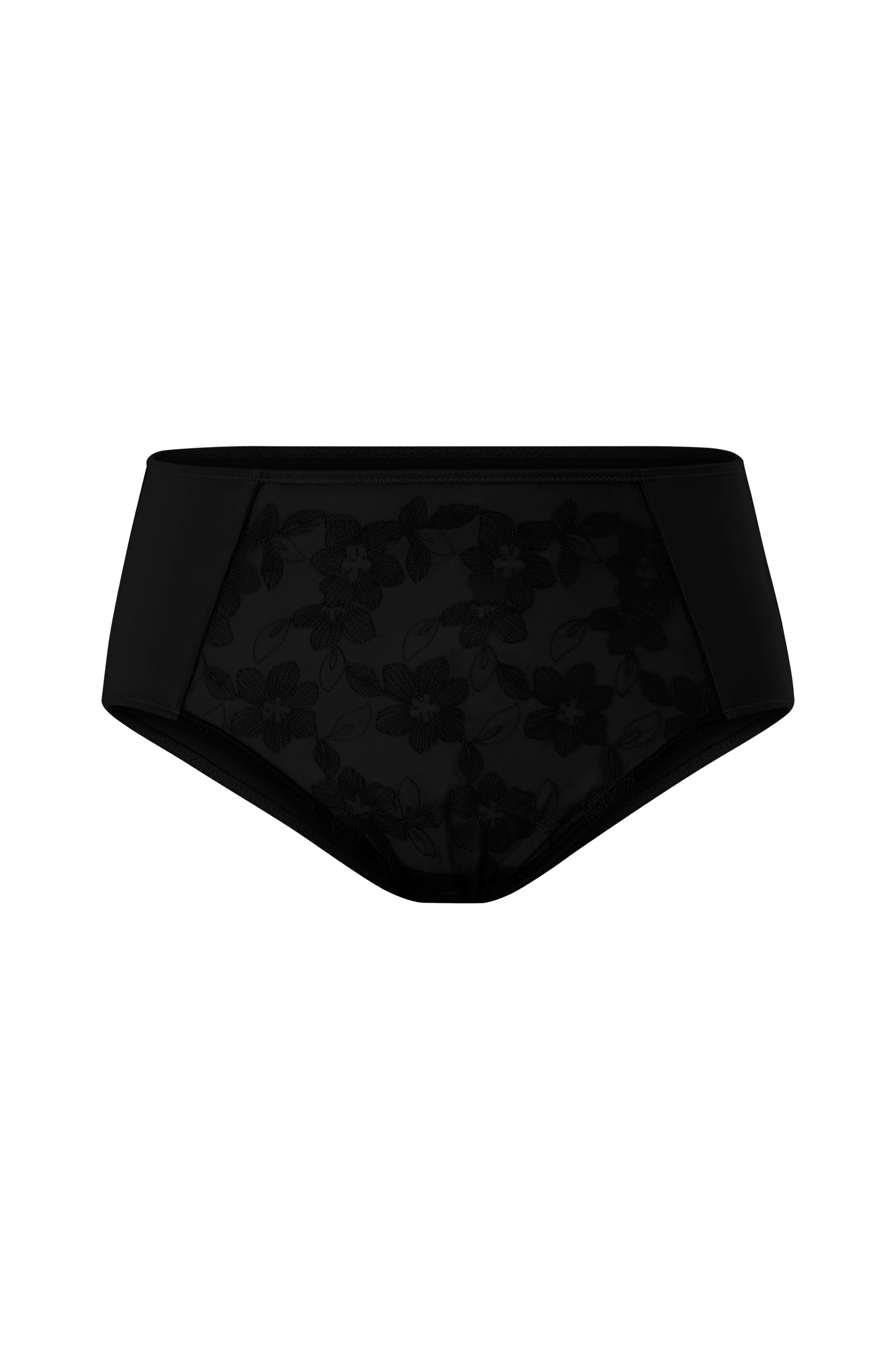 • Plusstørrelser• Høy modell• Gjennomsiktig mesh med broderi foran• Fôret skritt