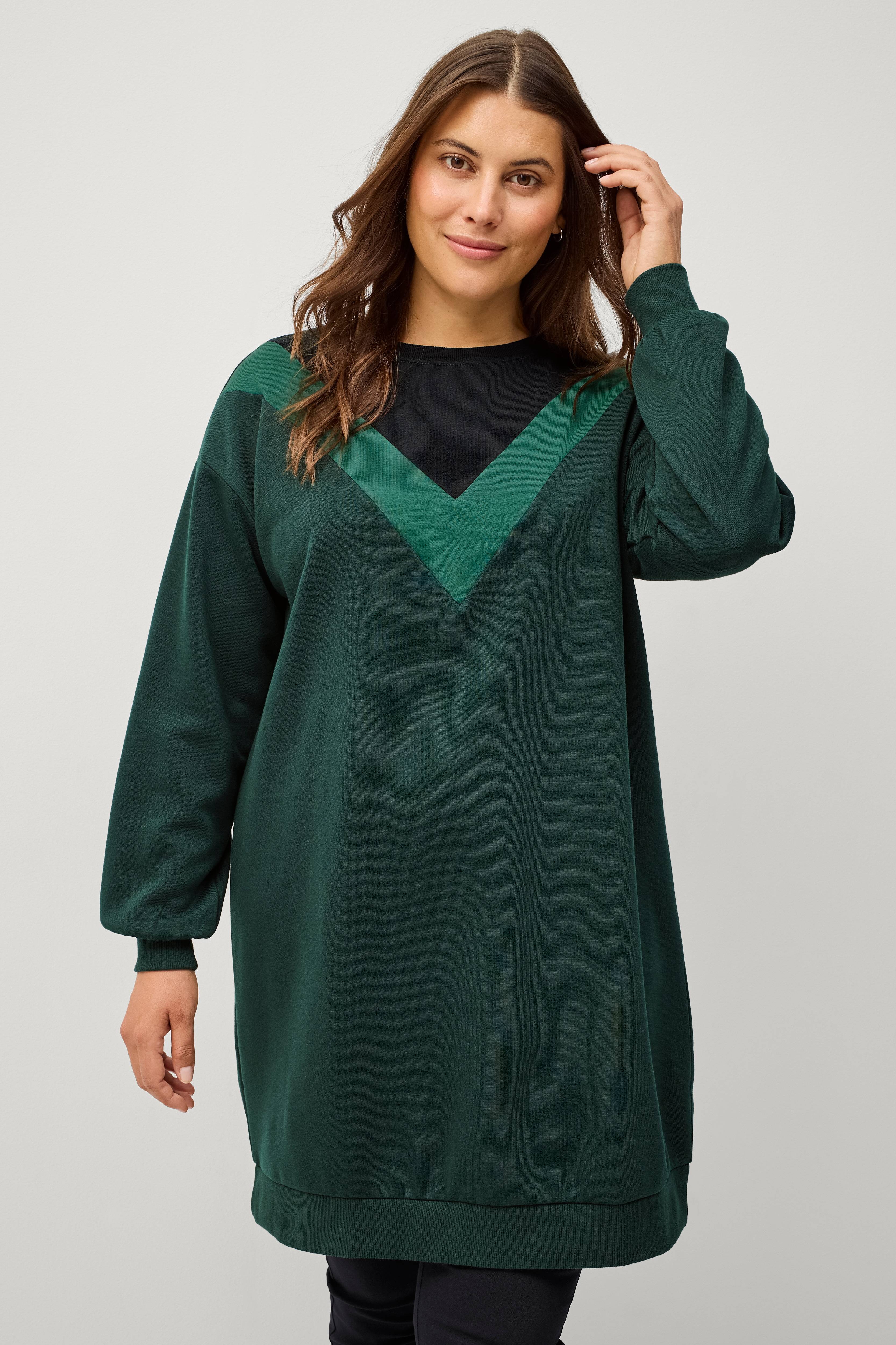 • Plusstørrelser• Rett, mangefarget modell i genser• Rund hals med liten ribbet kant• Utringet skulder med langt erme• Ribbestrikk i nedre kant og i ermeslutten• Lengde: 93 cm i størrelse S