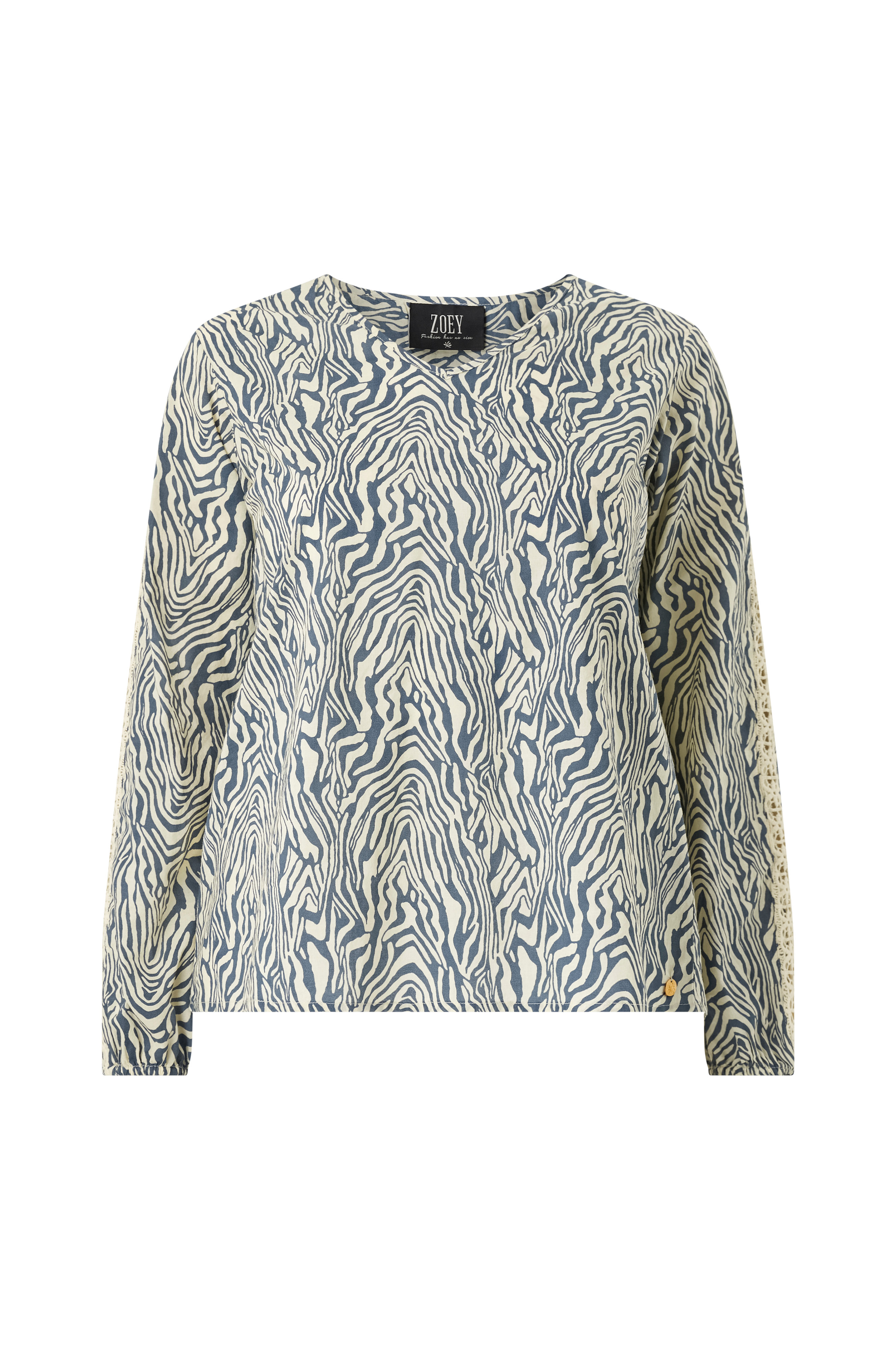 • Mønstret bluse i bomull• V-hals• Lange ermer• Gummistrikk i ermeslutten• Motfold bakpå• Pluss-størrelser