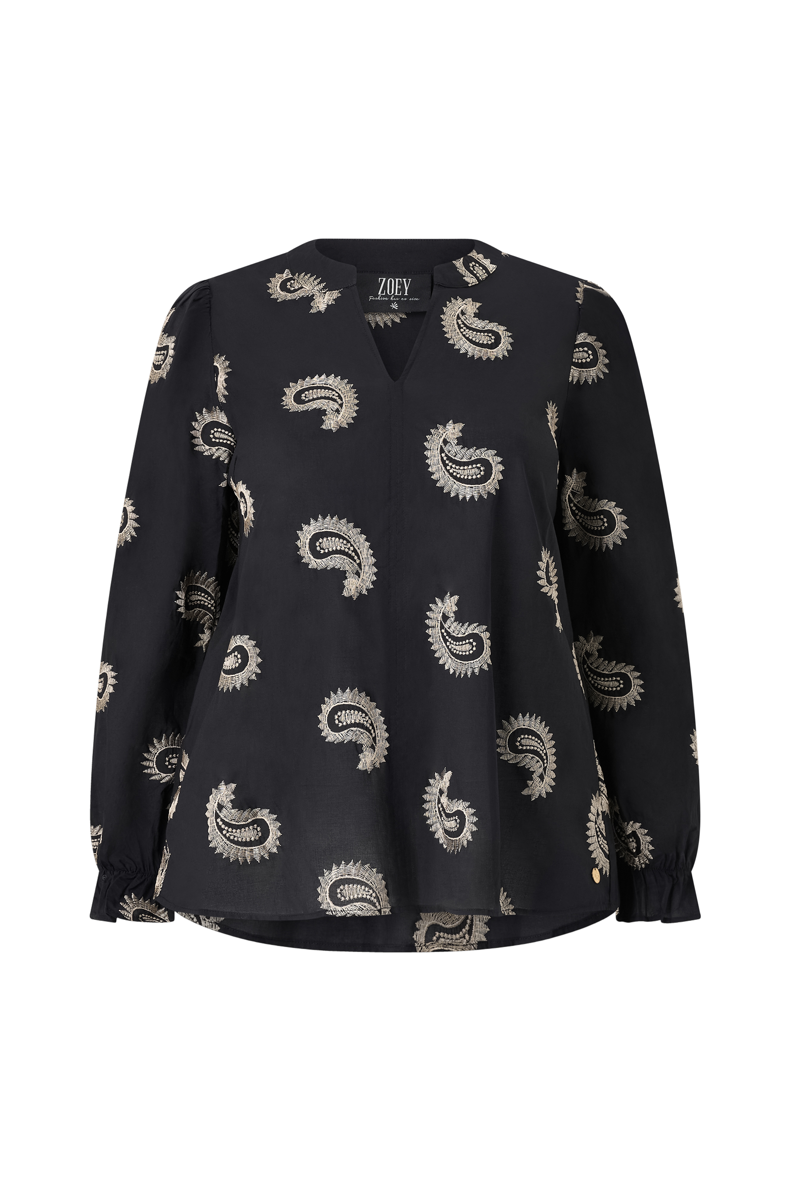• Bluse i bomull med broderi med et paisleymønster• V-formet hals• Lange puffermer med elastiske ermeender• Pluss-størrelser