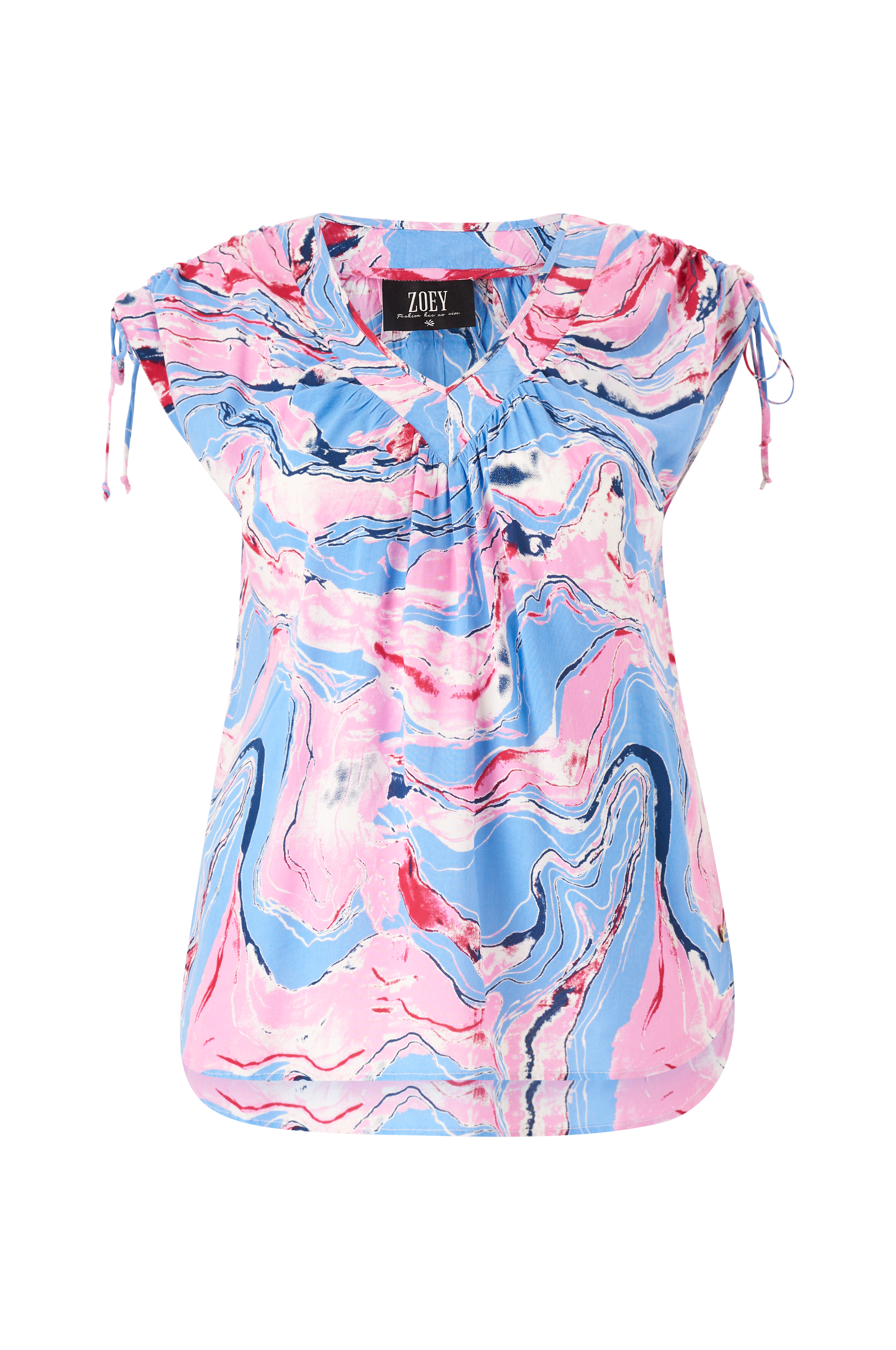 • Mønstret bluse i viskose• V-hals snitt• Korte ermer med snøring• Plusstørrelser