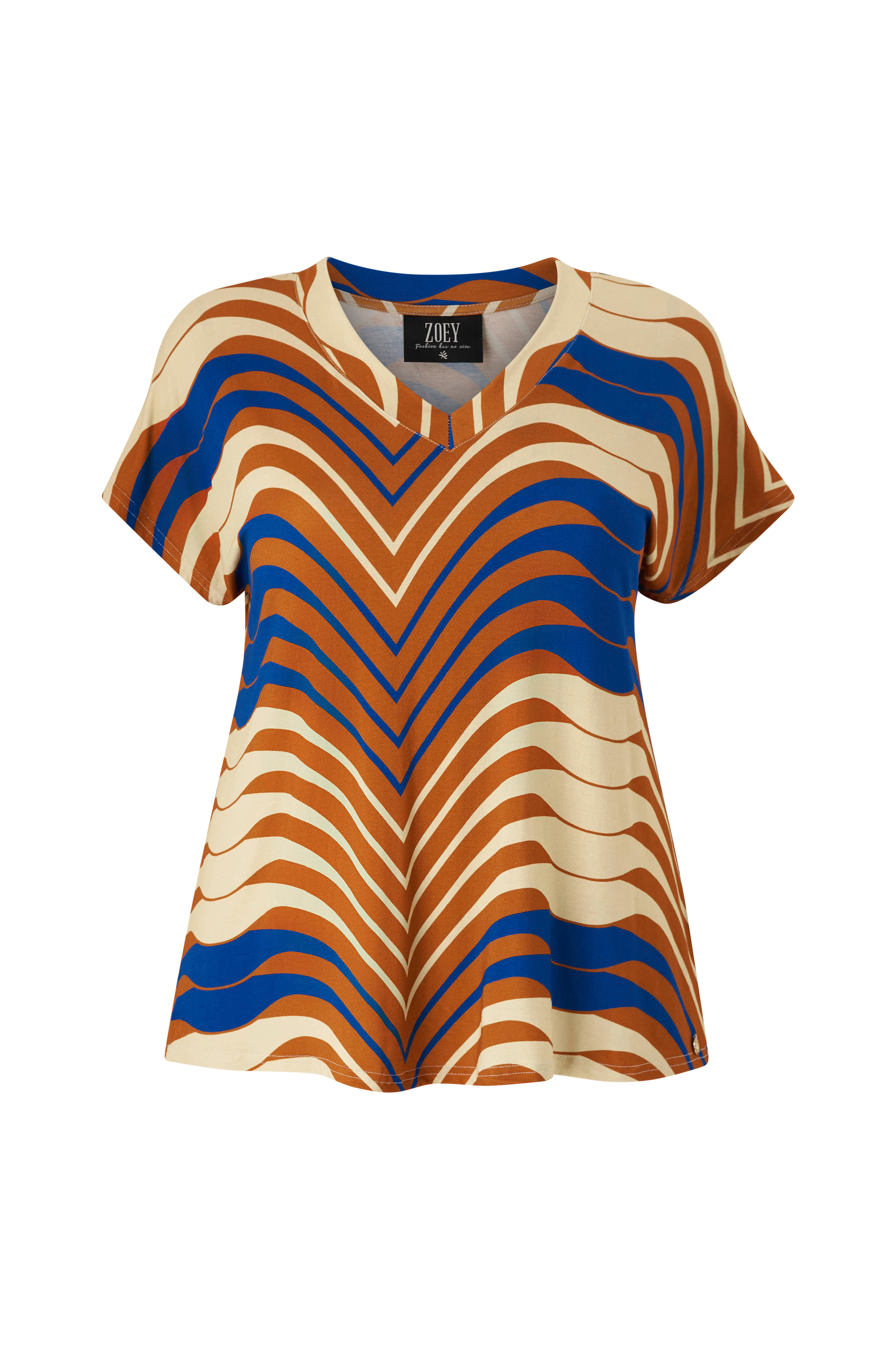 • V-formet t-skjorte i mykt, mønstret materiale• Korte ermer i kimonostil• Plus size